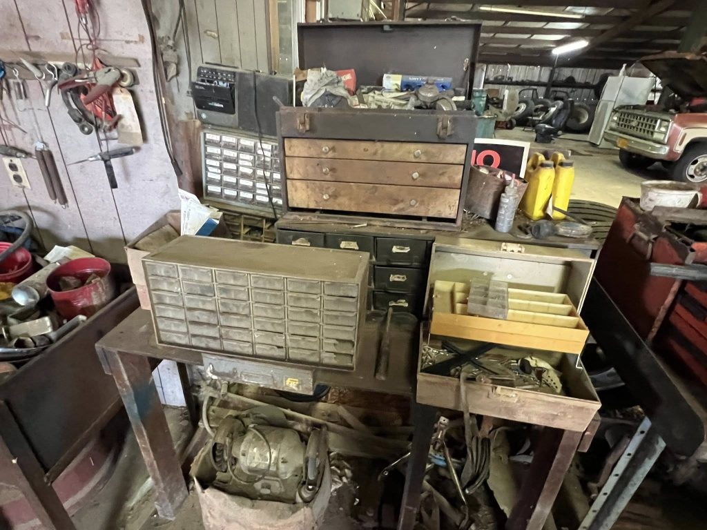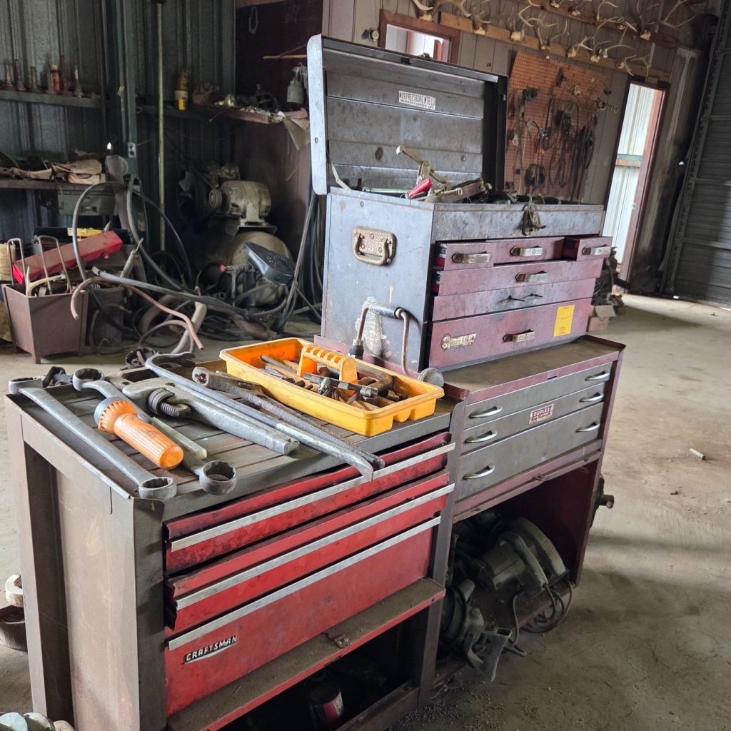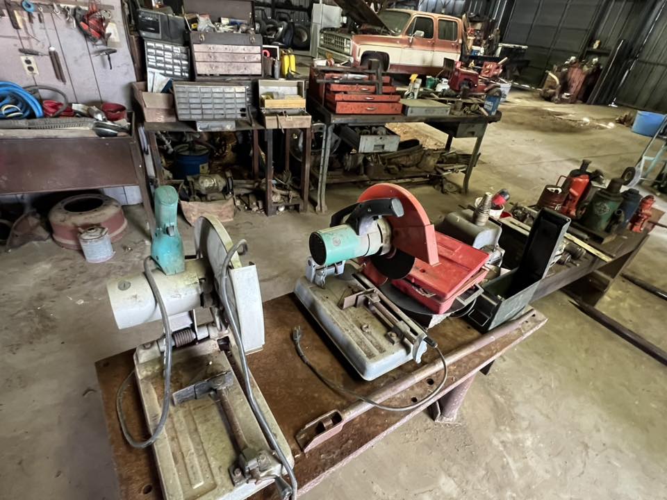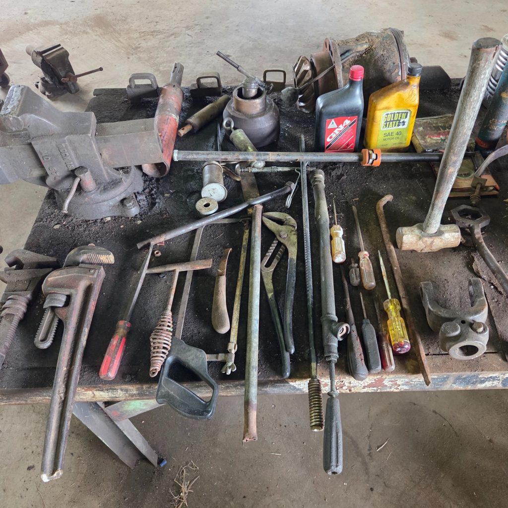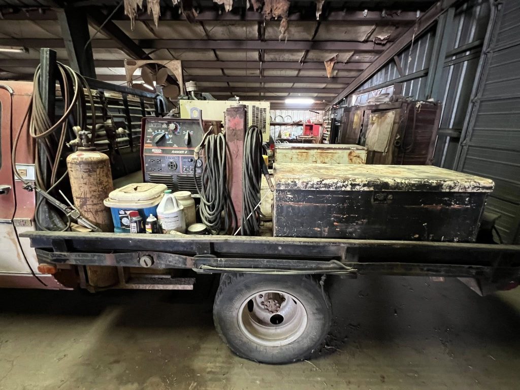 Shop Equipment & Tools: Lincoln Welder Ranger 8 – 225, welding Tools and Bottles* Pipeline Lincoln SA 200 Welder * Gas Powered portable Lincoln Welder with 8000 Watt Generator * Cutting Torch Cart & Gauges * Ingersoll Rand MD 2475 Gas Power Twin Cylinder Air Compressor *Briggs & Stratton 2800 PSI Pressure Washer *Drive-On Old Bear Wheel Alignment Tester Model #240 – Serial #179 *Diagnostic Tune up Center *5500 watt Portable Generator*old Tire Balancer *9000 LBs ac Winch *Job Truck Boxes *Small Tool Boxes *Shop Lights *Misc. groups of Tools *Creepers *Tire Racks *Air, Oil & Fuel Filters *Grease Guns *Buckets of Oil *Cases of Oil *Chain Saws *Skil-Saws *Chop Saws *Bench Grinders *Hammer and Ax Heads *Dolly’s *Hydraulic Jacks *Pintle Hitches *C-Clamps *Battery Chargers*Vices*Air Floor and Bumper Jacks*Framing and Finish Nailers *Truck Tire Tools*Hose Reels*Electric Heater*Hoses *Extension Cords *Shovels*Ladders*Wheel Barrow* *Steel Work Benches and Tables * Electric Welders *many other MISC. SHOP TOOLS